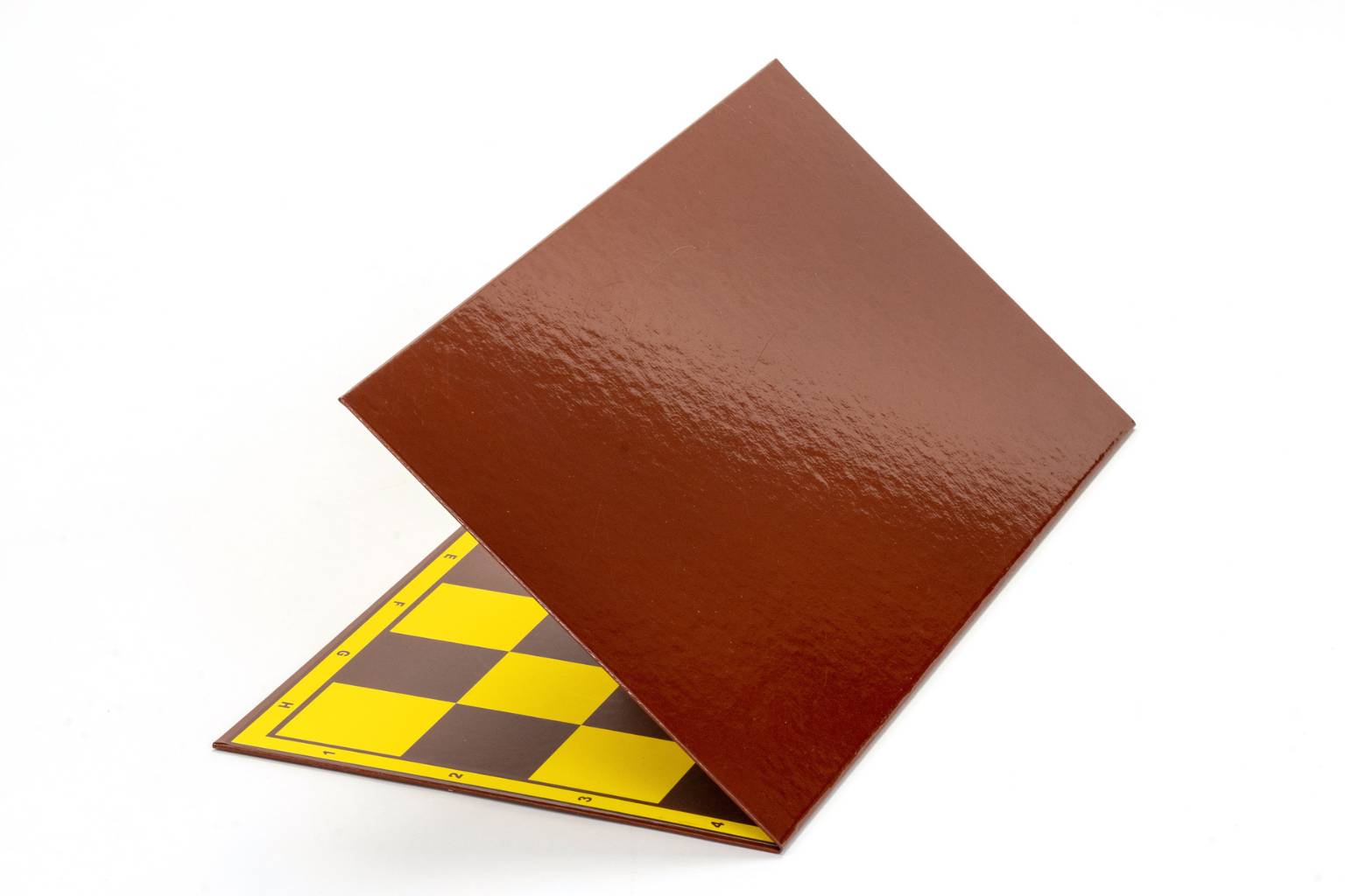 Żółte i brązowe pola na planszy sprawiają, że wzrok nie męczy się podczas dłuższych partii (mniejszy kontrast niż przy biało czarnych polach), dodatkowo szachownica opisana jest literami (od A do H) oraz cyframi (od 1 do 8).